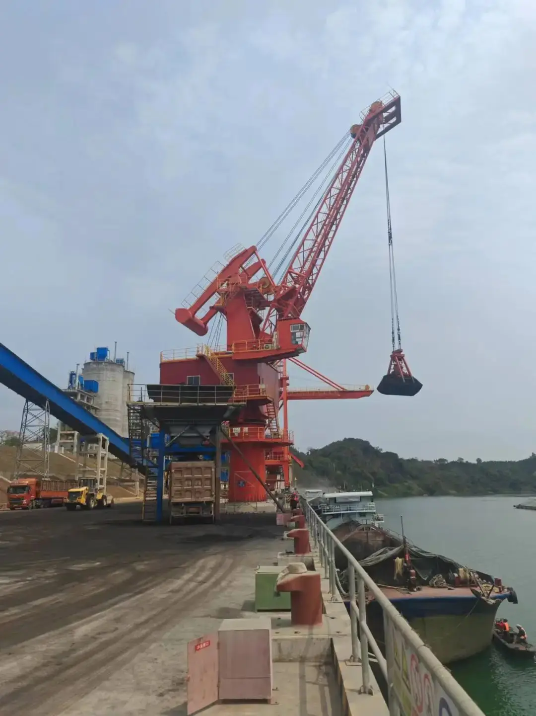 973FMH双动力抓料机正式交付广西隆安港宝塔作业区,助力隆安县和泰港口服务有限公司开启焦煤、铝土矿卸船作业新篇章!